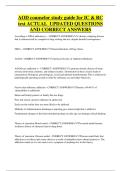 AOD counselor study guide for IC & RC test ACTUAL UPDATED QUESTIONS AND CORRECT ANSWERS According to NIDA addiction is: - CORRECT ANSWERSa chronic, relapsing disease that is characterized by compulsive drug seeking and use, despite harmful consequences NIDA - CORRECT ANSWERSNational Institute of Drug Abuse ASAM - CORRECT ANSWERSAmerican Society of Addiction Medicine ASAM says addiction is - CORRECT ANSWERSA primary chronic disease of brain reward, motivation, memory, and related...