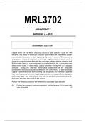 This document provides solutions for MRL3702 assignment 2 for semester 2 of 2023. Buy now and boost your year mark with 100%. For further assistance, please WhatsApp: 078 485 0163
