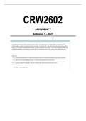 UNISA CRW2602 assignment 2 solutions for semester 1 of year 2023. Buy now and boost your year mark.