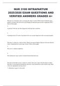 NUR 3100 INTRAPARTUM 2025/2026 EXAM QUESTIONS AND VERIFIED ANSWERS GRADED A+ NUR 3100 INTRAPARTUM 2025/2026 EXAM NUR 3100 INTRAPARTUM 2025/2026 EXAM QUESTIONS AND VERIFIED ANSWERS