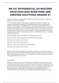 NR 547 DIFFERENTIAL DX MIDTERM EXAM 2025/2026 QUESTIONS AND VERIFIED SOLUTIONS GRADED A+ NR 547 DIFFERENTIAL DX MIDTERM EXAM 2025/2026 NR 547 DIFFERENTIAL DX MIDTERM EXAM 2025/2026 QUESTIONS AND VERIFIED SOLUTIONS
