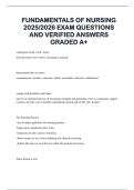 FUNDAMENTALS OF NURSING 2025/2026 EXAM QUESTIONS AND VERIFIED ANSWERS GRADED A+