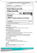 EDEXCEL A LEVEL FRENCH (9FR0/01) QUESTION PAPER 1 AND MARK SCHEME SUMMER 2025