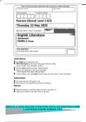 EDEXCEL A LEVEL ENGLISH LITERATURE (9ET0/03) QUESTION PAPER 3 AND MARK SCHEME SUMMER 2025