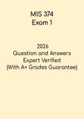 GuruTech Quality Exam Prep Materials!!! 1322 Documentos 0 Tarjetas de estudio 0 Paquetes Community 0 Seguidores 0 Siguiendo 1 Comentarios recibidos 1 0 0 0 0 1 semana hace • TestproCenter Relias – Updated 2026 Fetal Heart Monitoring PDF 1322 artículos Todo Documentos Tarjetas de estudio Paquetes Lo más vendido El más nuevo Puntuación CEHRS Study Guide | NHA Certified Electronic Health Record Specialist 2026 (0) $9.99 0x vendido This NHA CEHRS Study Guide is a comprehensive resource for students and professionals preparing for the Certified Electronic Health Record Specialist (CEHRS) exam. It includes practice questions, key concepts, and detailed explanations covering electronic health record systems, documentation standards, and regulatory compliance. Designed to reinforce knowledge, improve practical understanding, and boost exam confidence, this guide helps candidates effectively prepare for the CEHRS certification ... i x Examen • 9 páginas • por gurutech • subido 2026 Vista rápida i x Certified Electronic Health Record Specialist • Certified Electronic Health Record Specialist Neuro Exam 2 Study Guide | Neuroscience & Neurology 2026 (0) $9.99 0x vendido This Neuro Exam 2 Study Guide is a comprehensive resource for students preparing for their second neuroscience or neurology exam. It includes key concepts, practice questions, and detailed explanations covering neurological assessment, brain and spinal cord functions, and clinical disorders. Designed to reinforce understanding, improve critical thinking, and boost exam confidence, this guide helps students efficiently prepare for Neuro Exam 2 and achieve successful results. i x Examen • 34 páginas • por gurutech • subido 2026 Vista rápida i x Neuro • Neuro Neuro Exam 3 Study Guide | Neuroscience & Neurology 2026 (0) $9.99 0x vendido This Neuro Exam 3 Study Guide is a focused resource for students preparing for their third neuroscience or neurology exam. It includes key concepts, practice questions, and detailed explanations covering neurological assessment, brain and spinal cord functions, and clinical neurological disorders. Designed to reinforce understanding, improve critical thinking, and boost exam confidence, this guide helps students effectively prepare for Neuro Exam 3 and achieve successful results i x Examen • 29 páginas • por gurutech • subido 2026 Vista rápida i x Neuro • Neuro MSK 2 Exam 1 Study Set | Musculoskeletal Anatomy & Physiology 2026 (0) $9.99 0x vendido This MSK 2 Exam 1 Study Set is a comprehensive resource for students preparing for the Musculoskeletal Anatomy and Physiology exam. It includes key concepts, practice questions, and clear explanations covering bones, muscles, joints, and musculoskeletal physiology. Designed to help students reinforce knowledge, improve retention, and confidently approach MSK 2 Exam 1, this study set ensures thorough preparation and successful exam performance. i x Examen • 8 páginas • por gurutech • subido 2026 Vista rápida i x MSK 2 • MSK 2 MSK 2 Exam 1 Study Guide | Musculoskeletal Anatomy & Physiology 2026 (0) $9.99 0x vendido This MSK 2 Exam 1 Study Guide is a focused resource for students preparing for their first Musculoskeletal Anatomy and Physiology exam. It includes key concepts, practice questions, and detailed explanations covering bones, muscles, joints, and related physiological processes. Designed to reinforce understanding, improve retention of musculoskeletal knowledge, and boost exam confidence, this guide helps students effectively prepare for MSK 2 Exam 1 and achieve successful results. i x Examen • 17 páginas • por gurutech • subido 2026 Vista rápida i x MSK 2 • MSK 2 MIS 374 Exam 1 Study Guide | Management Information Systems 2026 (0) $9.99 0x vendido This MIS 374 Exam 1 Study Guide is a comprehensive resource for students preparing for the first Management Information Systems exam in the MIS 374 course. It includes key concepts, practice questions, and detailed explanations covering information systems, business applications, and technology management topics. Designed to strengthen understanding, reinforce critical concepts, and improve test-taking confidence, this guide helps students efficiently prepare for MIS 374 Exam 1 and achieve succe... i x Examen • 9 páginas • por gurutech • subido 2026 Vista rápida i x MIS 374 • MIS 374 MIS 304 Exam 1 Study Guide | University of Arizona Management Information Systems 2026 (0) $9.99 0x vendido This MIS 304 Exam 1 Study Guide for the University of Arizona is a complete resource for students preparing for their first Management Information Systems exam. It includes key concepts, practice questions, and detailed explanations covering information systems, business processes, and technology management principles. Designed to help students reinforce understanding, strengthen analytical skills, and confidently approach MIS 304 Exam 1, this guide ensures effective preparation and successful r... i x Examen • 13 páginas • por gurutech • subido 2026 Vista rápida i x MIS 304 • MIS 304 MIS 304 Exam 2 Study Guide | Management Information Systems 2026 (0) $9.99 0x vendido This MIS 304 Exam 2 Study Guide is a comprehensive resource for students preparing for the second Management Information Systems exam. It includes key concepts, practice questions, and detailed explanations covering information systems, business applications, and technology management topics. Designed to reinforce understanding, strengthen problem-solving skills, and boost test-taking confidence, this guide helps students effectively prepare for MIS 304 Exam 2 and achieve successful results. i x Examen • 16 páginas • por gurutech • subido 2026 Vista rápida i x MIS 304 • MIS 304 MIS 302F Exam 1 Study Guide | Management Information Systems 2026 (0) $9.99 0x vendido This MIS 302F Exam 1 Study Guide is a complete resource for students preparing for their first Management Informa
