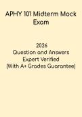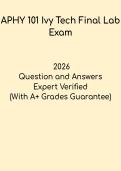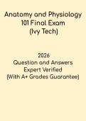 This Anatomy and Physiology 101 Final Exam Ivy Tech Study Guide is a complete resource for students preparing for the APHY 101 final exam. It covers key concepts, major body systems, and physiological processes, with practice questions and concise explanations to enhance understanding. Designed for Ivy Tech students, this guide helps efficiently review essential material, reinforce critical topics, and confidently approach the Anatomy and Physiology 101 final ... i x Examen • 15 páginas • por gurutech • subido 2026 Vista rápida i x anatomy and physiology 1 • anatomy and physiology 1 APHY 101 2026 Final Exam Study Guide | Anatomy & Physiology (0) $9.99 0x vendido This APHY 101 2026 Final Exam Study Guide provides a thorough review resource for students preparing for the Anatomy and Physiology 101 final exam. It includes key concepts, major body systems, and practice questions with clear explanations to ensure effective study and retention. Designed for Ivy Tech students, this guide helps strengthen understanding of physiological processes, reinforce critical topics, and confidently approach the APHY 101 final exam for successful results. i x Examen • 20 páginas • por gurutech • subido 2026 Vista rápida i x APHY 101 • APHY 101 APHY 101 Midterm Mock Exam Study Guide | Anatomy & Physiology 2026 (0) $9.99 0x vendido This APHY 101 Midterm Mock Exam Study Guide is a comprehensive resource designed to help students prepare for the Anatomy and Physiology 101 midterm exam. It includes practice questions, key concepts, and concise explanations covering all major body systems and physiological processes. Perfect for Ivy Tech students, this guide enables efficient review, reinforces understanding, and helps students approach the APHY 101 midterm exam with confidence for improved results. i x Examen • 20 páginas • por gurutech • subido 2026 Vista rápida i x APHY 101 • APHY 101 APHY 101 Ivy Tech Final Lab Exam Study Guide | Anatomy & Physiology (0) $9.99 0x vendido This APHY 101 Ivy Tech Final Lab Exam Study Guide provides a complete preparation resource for the Anatomy and Physiology 101 lab practical. It includes detailed explanations, diagrams, and practice questions covering major body systems, anatomical structures, and laboratory techniques. Designed for nursing and healthcare students, this guide helps efficiently review lab material, strengthen practical skills, and confidently approach the APHY 101 final lab exam for successful results. i x Examen • 39 páginas • por gurutech • subido 2026 Vista rápida i x APHY 101 • APHY 101 APHY 101 Final Exam Study Guide | Anatomy & Physiology 2026 (0) $9.99 0x vendido This APHY 101 Final Exam Study Guide is a complete resource for students preparing for the Anatomy and Physiology 101 final exam. It covers essential concepts, major body systems, and key physiological processes, with practice questions and concise explanations for efficient study. Designed for effective exam preparation, this guide helps students review critical topics, reinforce understanding, and confidently approach the APHY 101 final exam to achieve successful results. i x Examen • 20 páginas • por gurutech • subido 2026 Vista rápida i x APHY 101 • APHY 101 APHY 102 Ivy Tech Final Exam Study Guide | Anatomy & Physiology 2026 (0) $9.99 0x vendido This APHY 102 Ivy Tech Final Exam Study Guide is a comprehensive resource for students preparing for the Anatomy and Physiology 102 final exam. It includes key concepts, practice questions, and concise explanations covering all major systems and physiological processes. Designed to support effective exam preparation, this guide helps students review critical topics, strengthen understanding of anatomical structures and functions, and confidently approach the APHY 102 final exam for successful re... i x Examen • 11 páginas • por gurutech • subido 2026 Vista rápida i x APHY 102 • APHY 102 1 ... 37 38 39 ...