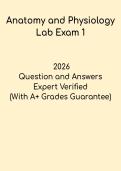 GuruTech Quality Exam Prep Materials!!! 1322 Documentos 0 Tarjetas de estudio 0 Paquetes Community 0 Seguidores 0 Siguiendo 1 Comentarios recibidos 1 0 0 0 0 1 semana hace • TestproCenter Relias – Updated 2026 Fetal Heart Monitoring PDF Por: • 8 horas hace Hello. thank you very much for the positive feedback. 1322 artículos Todo Documentos Tarjetas de estudio Paquetes Lo más vendido El más nuevo Puntuación A&P 2 Lab Exam 1 Study Guide | APHY 2 Lab Practical Prep 2026 (0) $9.99 0x vendido This A&P 2 Lab Exam 1 Study Guide is a detailed resource for students preparing for their Anatomy and Physiology 2 lab practical. It includes diagrams, practice questions, and explanations of important anatomical structures and physiological systems covered in Lab Exam 1. Designed to help students reinforce lab skills, understand core concepts, and confidently approach the APHY 2 lab exam, this guide ensures effective preparation and successful results. i x Examen • 13 páginas • por gurutech • subido 2026 Vista rápida i x A&P • A&P A&P 1 Lab Practical 1 All Topics Study Guide | APHY 1 Lab Prep 2026 (0) $9.99 0x vendido This A&P 1 Lab Practical 1 All Topics Study Guide is a comprehensive resource for students preparing for their first Anatomy and Physiology lab practical. Covering all topics included in Lab Practical 1, it provides detailed diagrams, practice questions, and explanations of key anatomical structures and physiological concepts. Designed to help students strengthen practical skills, understand critical material, and confidently approach the APHY 1 lab exam, this guide ensures efficient preparation... i x Examen • 9 páginas • por gurutech • subido 2026 Vista rápida i x A&P • A&P A&P 2 Lab Practice Practical 1 Study Guide | APHY 2 Lab Prep 2026 (0) $9.99 0x vendido This A&P 2 Lab Practice Practical 1 Study Guide is a complete resource for students preparing for the Anatomy and Physiology 2 lab practical. It includes detailed diagrams, practice questions, and explanations covering key anatomical structures and physiological concepts. Designed to help students strengthen lab skills, understand core topics, and efficiently review material, this guide ensures confidence and success during the APHY 2 lab practical exam. i x Examen • 11 páginas • por gurutech • subido 2026 Vista rápida i x A&P • A&P Anatomy & Physiology Lab Exam 1 Study Guide | APHY Lab Prep 2026 (0) $9.99 0x vendido This Anatomy and Physiology Lab Exam 1 Study Guide provides a comprehensive review for students preparing for their first APHY lab practical. It includes diagrams, practice questions, and detailed explanations of anatomical structures and laboratory techniques. Designed for nursing and healthcare students, this guide helps strengthen practical skills, improve understanding of human anatomy, and confidently approach the APHY Lab Exam 1 for accurate performance and successful results. i x Examen • 7 páginas • por gurutech • subido 2026 Vista rápida i x anatomy and physiology 1 • anatomy and physiology 1 Anatomy & Physiology 101 Final Exam Ivy Tech Study Guide | APHY 101 (0) $9.99 0x vendido Product Description (1 Paragraph):