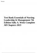 Test bank - essentials of nursing leadership and management, 7th edition (weiss, 2020), chapter 1-16 | all chaptersTest Bank Essentials of