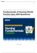 Quiz 3 Fundamentals of Nursing Practice Test Bank (600 Questions) - NurseFundamentals of Nursing NCLEX