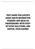 TesT Bank for Davis’s Basic Math Review for Nursing and Health Professions: with Stepby-Step Solutions, 2nd Editon, Vicki Raines