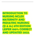 Update 2022/2023 i x Examen • 291 páginas • por jenio • subido 2023 Vista rápida i x NURSING • NURSING INTRODUCTION TO NURSING NCLEX MATERNITY AND PEDIATRIC NURSING (Q & As) 8TH EDITION LEIFER 100% CORRECT AND UPDATED 2023 (0) $11.99 0x vendido INTRODUCTION TO