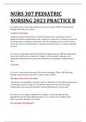 53. A nurse is caring for an infant who is receiving IV fluids for the treatment of tetralogy of Fallot and begin... i x Examen • 18 páginas • por jhaque • subido 2024 Vista rápida i x West Coast University • NURS 307 NURS 307 / NURS307 PEDIATRICS 2019 A. QUESTIONS WITH 100% CORRECT ANSWERS. (0) $11.49 0x vendido A nurse is assessing a school age child who has peritonitis. Which of the following findings should the nurse expect?