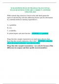 EXAM QUESTIONS WITH 100% CORRECT ANSWERS UPDATED 2024 i x Examen • 22 páginas • por klmz • subido 2024 Vista rápida i x NUR 635 • NUR 635 MARYVILLE UNIVERSITY| NURS 612| EXAM 4 WITH 100% CORRECT ANSWES LATEST UPDATE 2024 (0) $17.99 0x vendido MARYVILLE UNIVERSITY| NURS 612| EXAM 4 WITH 100% CORRECT ANSWES LATEST UPDATE 2024 A patient’s inability to follow simple instructions could indicate with of the following findings? A. Dysphonia B. Amnesia C. Aphasia D. Depression - D. Depression A patient scores a 3 on a mini-cog assessment instrument for dementia, What does this score indicate? A. Advanced dementia B. Early dementia C. Need for further evaluation D. Negative screen for dementia - D. Negative screen for dementia i x Examen • 17 páginas • por klmz • subido 2024 Vista rápida i x NURS 612 • NURS 612 NURS 5315| ADVANCED PATHOPHYSIOLOGY| EXAM QUESTIONS WITH 100% CORRECT ANSWERS UPDATED 2024 SCORED A+ (0) $17.99 0x vendido NURS 5315| ADVANCED PATHOPHYSIOLOGY| EXAM QUESTIONS WITH 100% CORRECT ANSWERS UPDATED 2024 SCORED A+