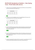 Unlike general... i x Book Examen • 537 páginas • por klmz • subido 2025 Vista rápida i x Medical-Surgical Nursing: Focus on Clinical Judgme • Medical-Surgical Nursing: Focus on Clinical Judgme Focus on Adult Health 3e (us Ed) • Linda F. HONAN• ISBN 9781975190941 MATH 120: Introduction to Statistics – Lime, Spring – Week 6 Quiz (Scored A+) – Practice Questions with Answers (0) $20.99 0x vendido This document contains a full set of practice questions and detailed answers from Week 6 of MATH 120: Introduction to Statistics. Topics include probability distributions, expected value, binomial and normal distributions, and interpretation of statistical results. Ideal for review before quizzes or exams, this resource is based on a high-scoring submission (Grade: A+). i x Examen • 3 páginas • por klmz • subido 2025 Vista rápida i x MATH 120: Introduction to Statistics – Lime, Sprin • MATH 120: Introduction to Statistics – Lime, Sprin MATH 120: Introduction to Statistics – Lime, Spring Term – Week 5 Quiz with Answers (0) $21.39 0x vendido This document contains the complete Week 5 quiz for MATH 120: Introduction to Statistics at Lime, including both questions and correct answers. Topics covered include probability rules, conditional probability, and applications of the multiplication and addition rules. Useful for revision and practice ahead of exams or assessments. i x Examen • 3 páginas • por klmz • subido 2025 Vista rápida i x MATH 120: • MATH 120: Neuroscience 7th Edition by Purves – Complete Test Bank for Chapters 1-34 | All-in-One Exam Prep Resource (0) $20.99 0x vendido Neuroscience, 7th Edition by Purves – Complete Test Bank for Chapters 1–34 | All-in-One Exam Prep Resource