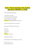 This study guide covers Pediatrics Exam 1, focusing on child growth and development, including physical, cognitive, and psychosocial milestones, growth assessment techniques, nutritional needs, age-appropriate interventions, and factors affecting healthy development. It includes exam-style questions with verified, accurate answers designed to support effective preparation for the 2026–2027 academic year. The material is structured to reinforce pediatric growth concepts, enhance assessment skil...