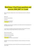 This study guide covers the Med-Surg 1 Final Exam, including key topics such as patient assessment, pathophysiology, fluid and electrolyte balance, acid-base disorders, cardiovascular and respiratory conditions, infection control, medications, perioperative care, and patient safety. It includes exam-style questions with verified, accurate answers designed to support thorough preparation for the 2026–2027 academic year. The material is structured to reinforce clinical knowledge, critical thinki...