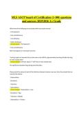 This study guide covers the first 100 questions of the MLS ASCP Board of Certification Exam, including key laboratory science topics such as hematology, clinical chemistry, microbiology, immunology, blood banking, urinalysis, laboratory operations, quality control, and safety. It includes exam-style questions with verified, accurate answers designed to support focused preparation for the 2025–2026 certification period. The material is structured to reinforce practical laboratory skills, diagno...