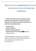 HESI EVOLVE COMPREHENSIVE EXAM 1 QUESTIONS AND ANSWERS 2024 (VERIFIED)