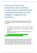 NCLEX-PN TEST-BANK QUESTIONS AND ANSWERS LATEST UPDATE 20232024 WITH ANSWERS AND EXPLANATION CORRECT VERIFIED AND GRADED A+