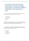NCLEX-PN TEST BANK (200 QUESTIONS WITH ANSWERS AND EXPLANATIONS)CORRECT VERIFIED AND GRADED A+ 2024