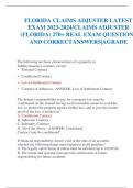 FLORIDA CLAIMS ADJUSTER LATEST EXAM 2023-2024CLAIMS ADJUSTER (FLORIDA) 270+ REAL EXAM QUESTIONS AND CORRECT ANSWERSAGRADE