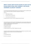 WEST COAST EMT BLOCK EXAM #4 2024 ACTUAL EXAM QUESTIONS AND CORRECT DETAILED ANSWERS ALREADY GRADED