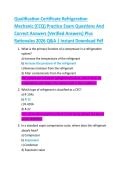 Qualification Certificate Refrigeration Mechanic (CCQ) Practice Exam Questions And Correct Answers (Verified Answers) Plus Rationales 2026 Q&A | Instant Download Pdf