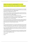 This document contains real Health Assessment Exam 1 questions paired with verified and accurate answers. It covers the essential topics typically assessed in introductory health assessment courses, including patient history, vital signs, physical examination techniques, and clinical reasoning. The material is structured to support effective exam preparation and reflects common testing formats used in nursing and health science programs.