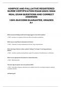 HOSPICE AND PALLIATIVE REGISTERED NURSE CERTIFICATION EXAM 2023/2024 REAL EXAM QUESTIONS AND CORRECT ANSWERS 100% SUCCESS GUARANTEE, GRADED A+