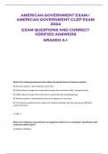 AMERICAN GOVERNMENT EXAM/ AMERICAN GOVERNMENT CLEP EXAM 2024 EXAM QUESTIONS AND CORRECT VERIFIED ANSWERS GRADED A+