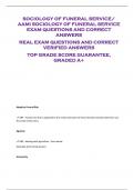 SOCIOLOGY OF FUNERAL SERVICE/ AAMI SOCIOLOGY OF FUNERAL SERVICE EXAM QUESTIONS AND CORRECT ANSWERS REAL EXAM QUESTIONS AND CORRECT VERIFIED ANSWERS TOP GRADE SCORE GUARANTEE, GRADED A+