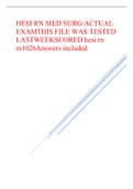 HESI RN MED SURG/ACTUAL EXAMTHIS FILE WAS TESTED LASTWEEKSCORED hesi rn m1026Answers included