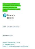 Pearson Edexcel GCE A Leve In Chemistry (9CH0) Paper 01: Advanced Inorganic and Physical Chemistry and Mark Scheme