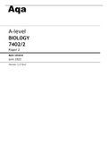 Aqa BIOLOGY A-level 7402/1 Paper 1 Mark Scheme June2022 100% Correct.