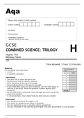 Aqa GCSE Biology 8461/2H Higher Tier Paper 2H Question Paper June2022 Verified.