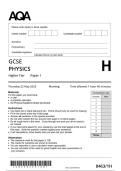 GCSE AQA JUNE 2025 HIGHER TRIPLE SCIENCE PHYSICS PAPER 1H QUESTION PAPER AND MARK SCHEME.