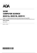AQA Gcse Computer Science 8525/1 paper 1 2025 Mark Scheme