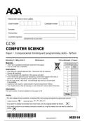 AQA Gcse Computer Science 8525/2 paper 2 2025 Question Paper and Mark Scheme