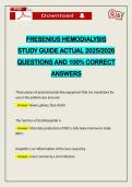 - FRESENIUS HEMODIALYSIS STUDY GUIDE ACTUAL 2026 QUESTIONS AND 100% CORRECT ANSWERS • Examen