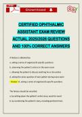 CERTIFIED OPHTHALMIC ASSISTANT EXAM REVIEW ACTUAL 2026 QUESTIONS AND 100% CORRECT ANSWERS