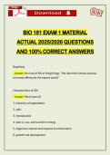 BIO 181 EXAM 1 MATERIAL ACTUAL 2026 QUESTIONS AND 100% CORRECT ANSWERS