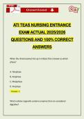ATI TEAS NURSING ENTRANCE EXAM ACTUAL 2026 QUESTIONS AND 100% CORRECT ANSWERS