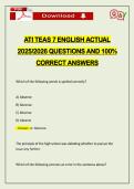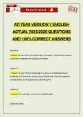 ATI TEAS VERSION 7 ENGLISH ACTUAL 2026 QUESTIONS AND 100% CORRECT ANSWERS