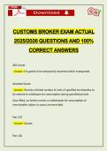 - CUSTOMS BROKER EXAM ACTUAL 2026 QUESTIONS AND 100% CORRECT ANSWERS • Examen