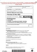 Pearson Edexcel Level 3 GCE Portuguese Advanced PAPER 1: Translation into English, Reading comprehension and Writing (research task) MAY 2025 Combined QUESTION PAPER And MARK SCHEME