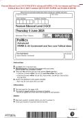 Pearson Edexcel Level 3 GCE POLITICS Advanced PAPER 2: UK Government and Non-core