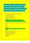 CERTIFIED ENERGY MANAGER (CEM®) QUESTION AND CORRECT ANSWERS (VERIFIED ANSWERS) PLUS RATIONALES 2026 Q&A INSTANT DOWNLOAD PDF