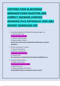 CERTIFIED FOOD & BEVERAGE MANAGER EXAM QUESTION AND CORRECT ANSWERS (VERIFIED ANSWERS) PLUS RATIONALES 2026 Q&A INSTANT DOWNLOAD PDF