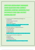 CERTIFIED RESTAURANT MANAGER EXAM QUESTION AND CORRECT ANSWERS (VERIFIED ANSWERS) PLUS RATIONALES 2026 Q&A INSTANT DOWNLOAD PDF