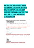 ASE AUTOMOBILE TECHNICIAN A4 SUSPENSION & STEERING PRACTICE EXAM QUESTION AND CORRECT ANSWERS (VERIFIED ANSWERS) PLUS RATIONALES 2026 Q&A INSTANT DOWNLOAD PDF